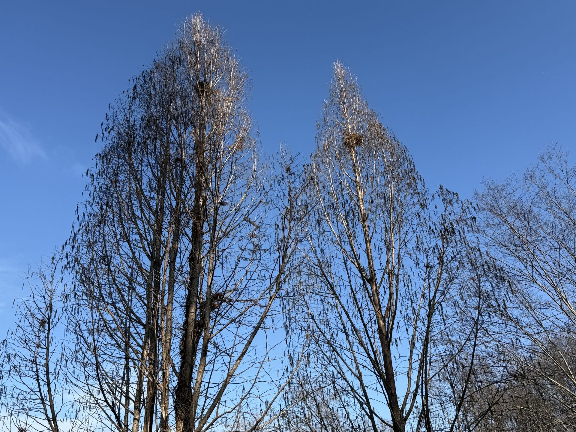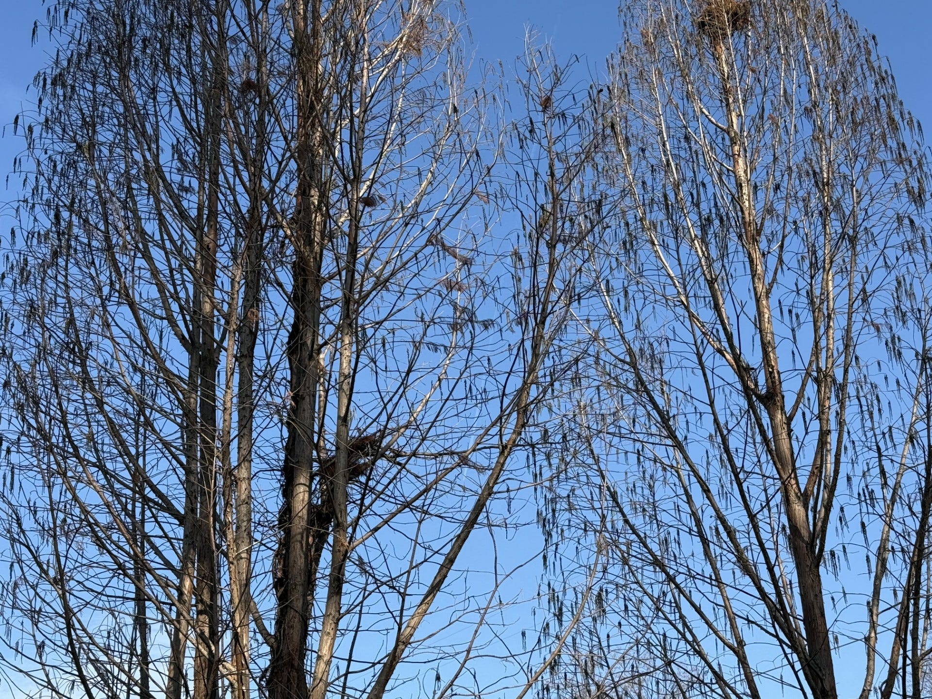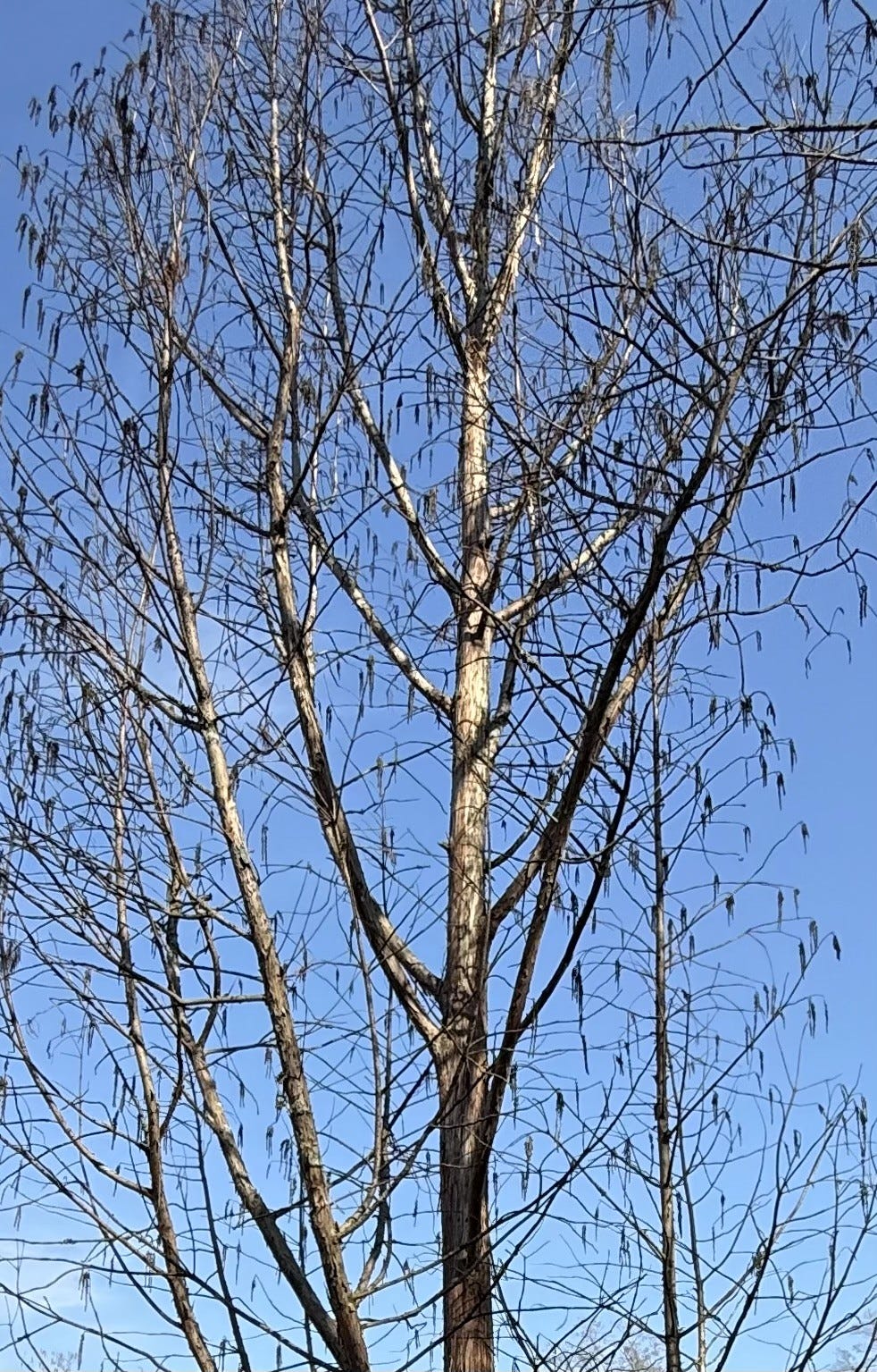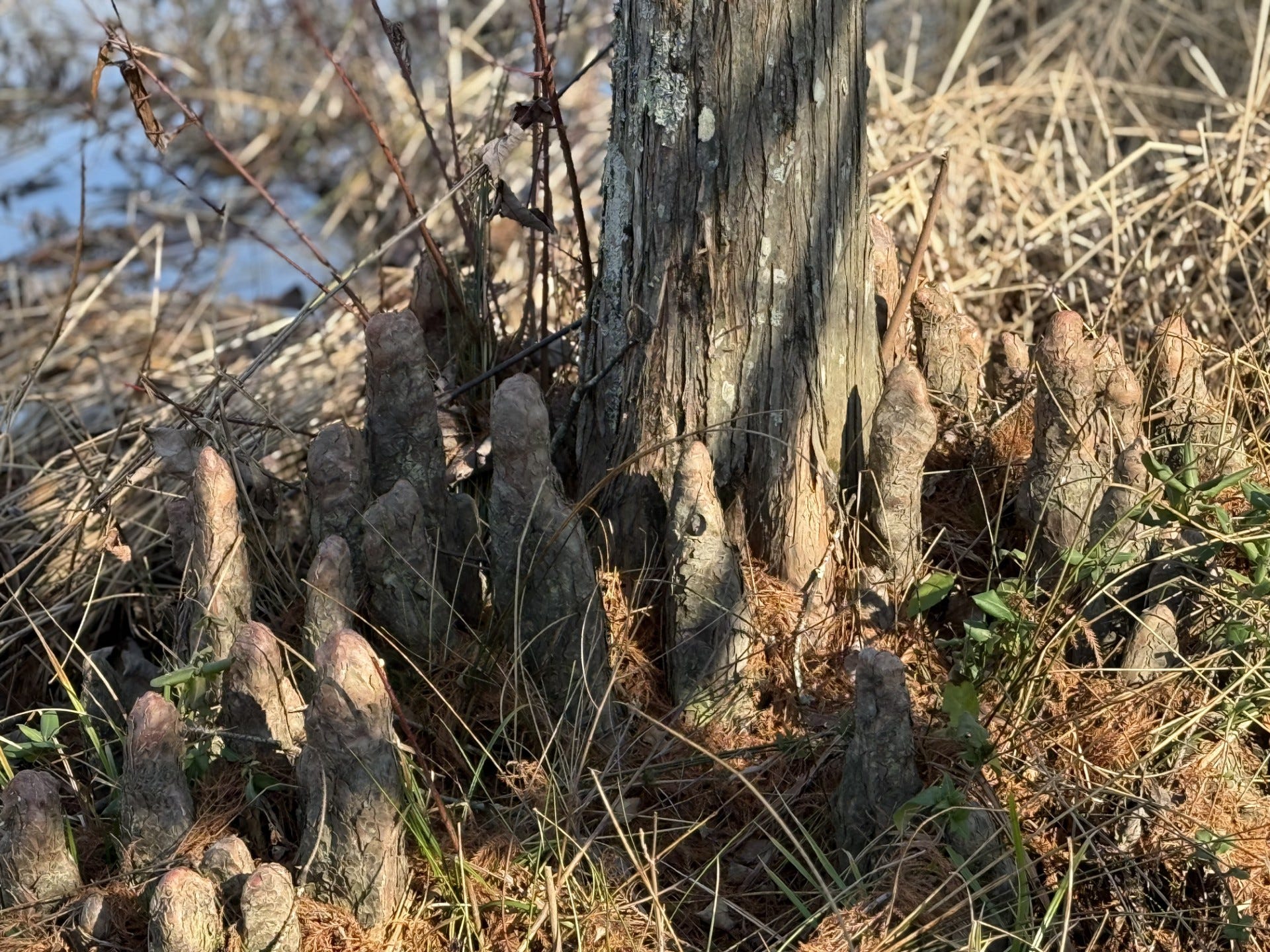 A collection of knobby knees gathered around the trunk of a cypress tree.