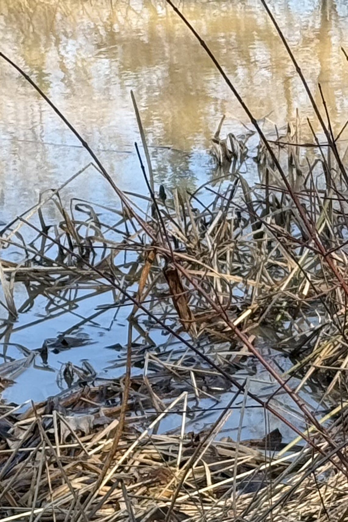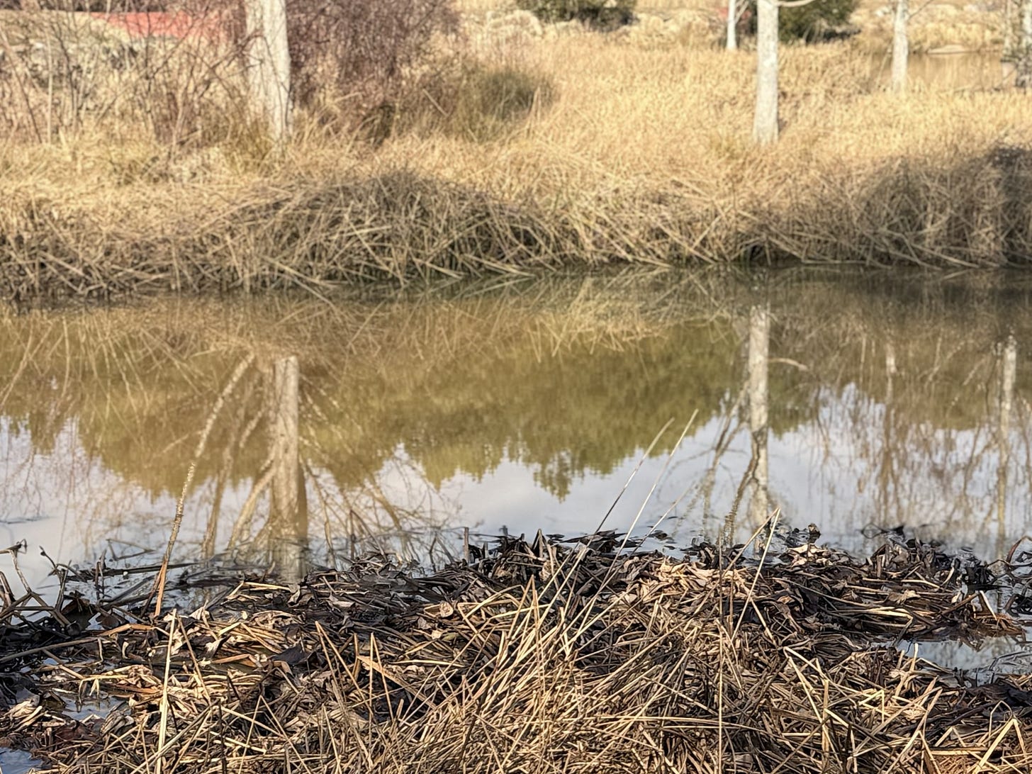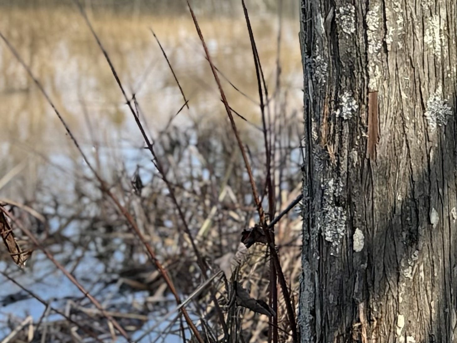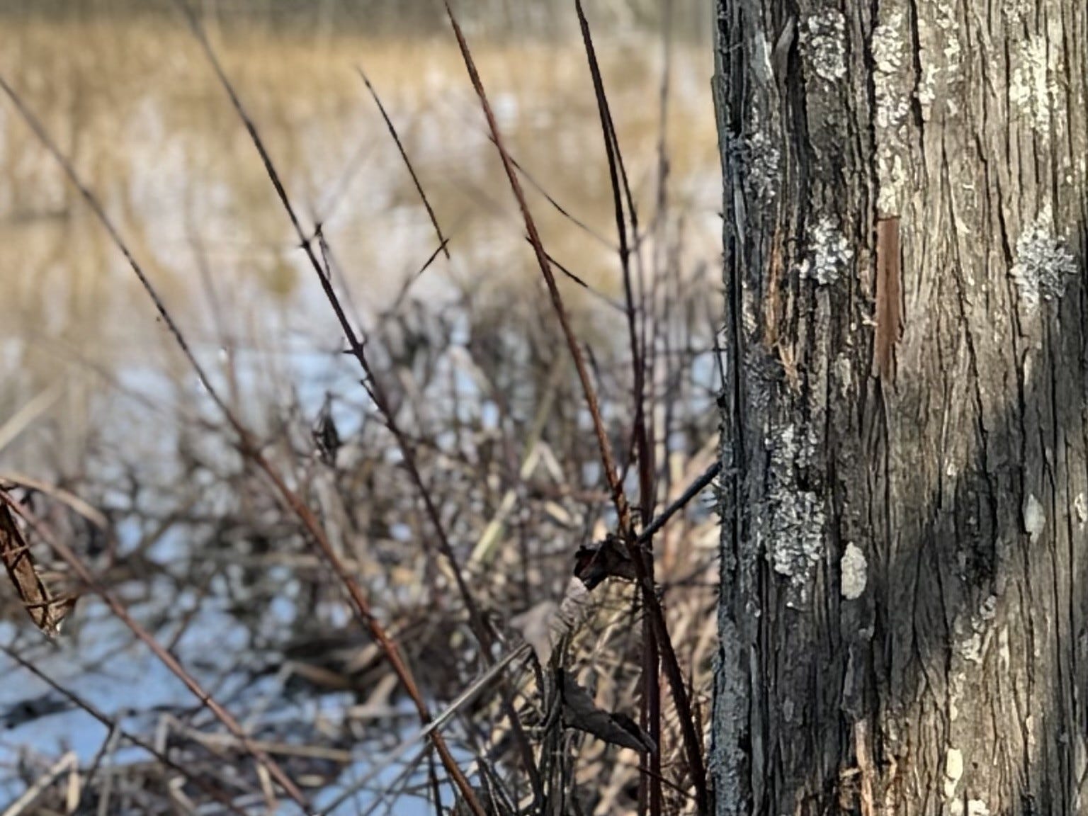 When we get to the pond, we decide to take our time, and sit a while on the overlook. As I bask in the soft shine of the winter light, I listen to the wind stirring old leaves and dry grasses and to the gentle rustling of birds in the underbrush and gradually realize this seemingly serene winter scene is a bevy of activity.